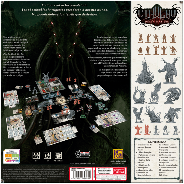 1 cuaderno de reglas, 1 cuaderno de misiones, 2 sobres, 191 cartas, 20 cartas pequeñas, 142 fichas, 8 peanas troqueladas