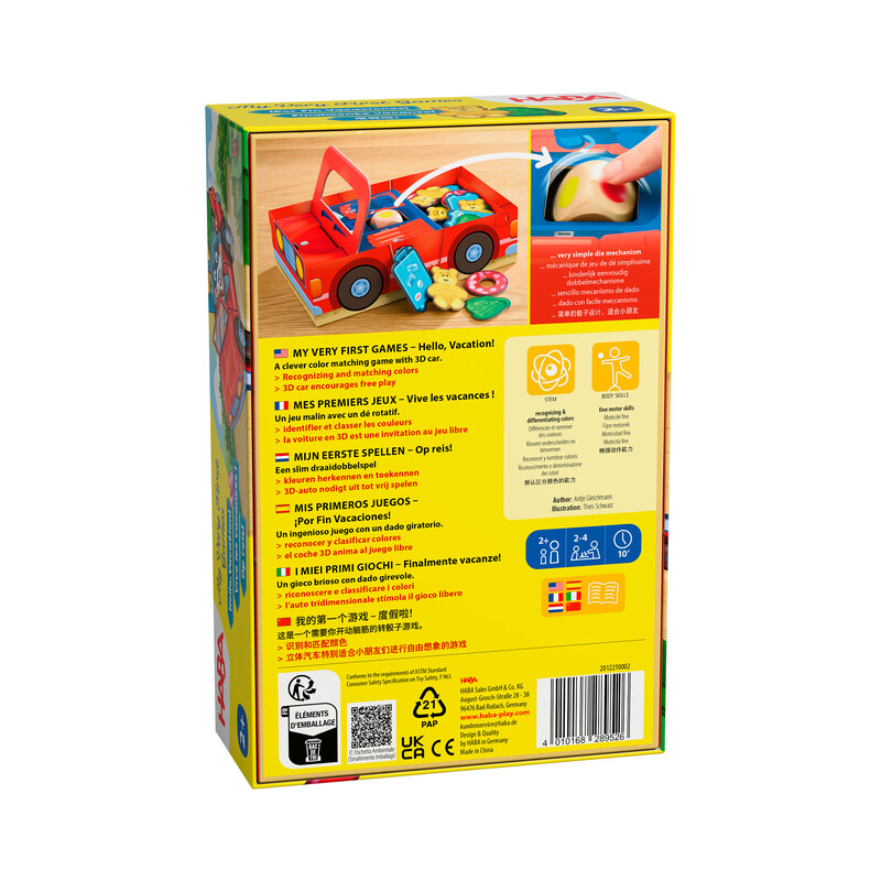 OTROS DETALLES: Sencillo y original mecanismo de dado. Reconocer y clasificar colores. El coche 3D anima al juego libre.