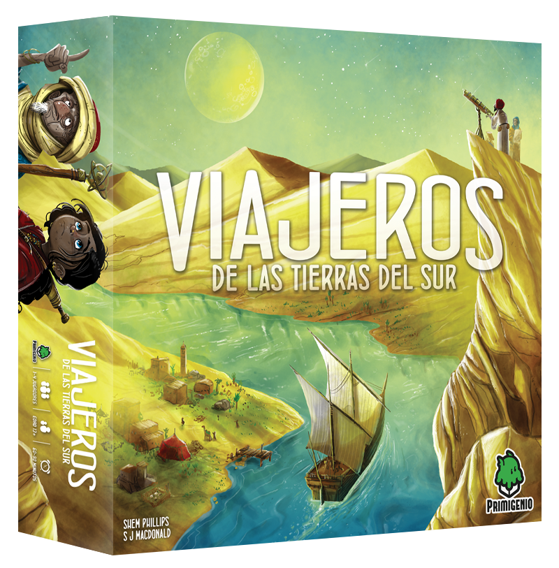 Viajeros de las Tierras del Sur está ambientado en el momento de máximo esplendor del califato abasí, alrededor del año 820 d.C. Como valientes exploradores, cartógrafos y astrónomos, los jugadores parten de Bagdad para cartografiar las tierras de alrededor, sus cursos de agua y los cielos que los cubren. Deberán gestionar con cuidado su caravana de trabajadores, su equipamiento e informar regularmente a la Casa de la Sabiduría para registrar sus descubrimientos. ¿Conseguirás impresionar al Califa o perderás el rumbo y sucumbirás en la tierra salvaje?